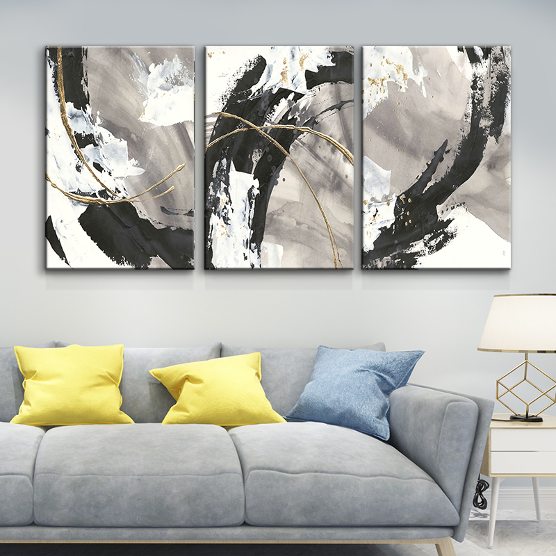 set of 3 abstract art prints of paintings black grey and gold – artze wall art