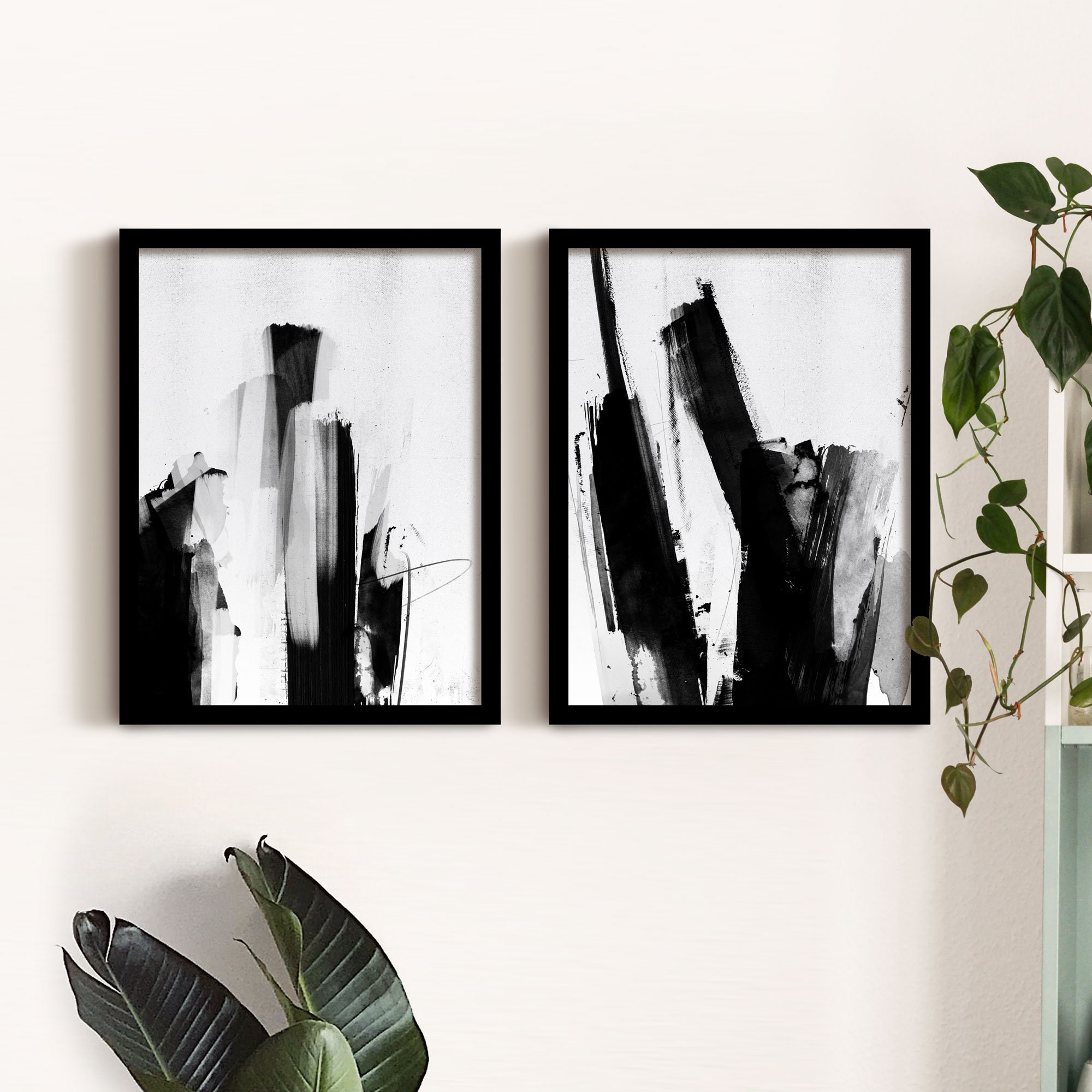 black and white abstract wall art, brush stroke print, modern minimal ink painting, home decor, framed art, large poster framed wall art, wall décor, paintings, wall coverings, decals & more