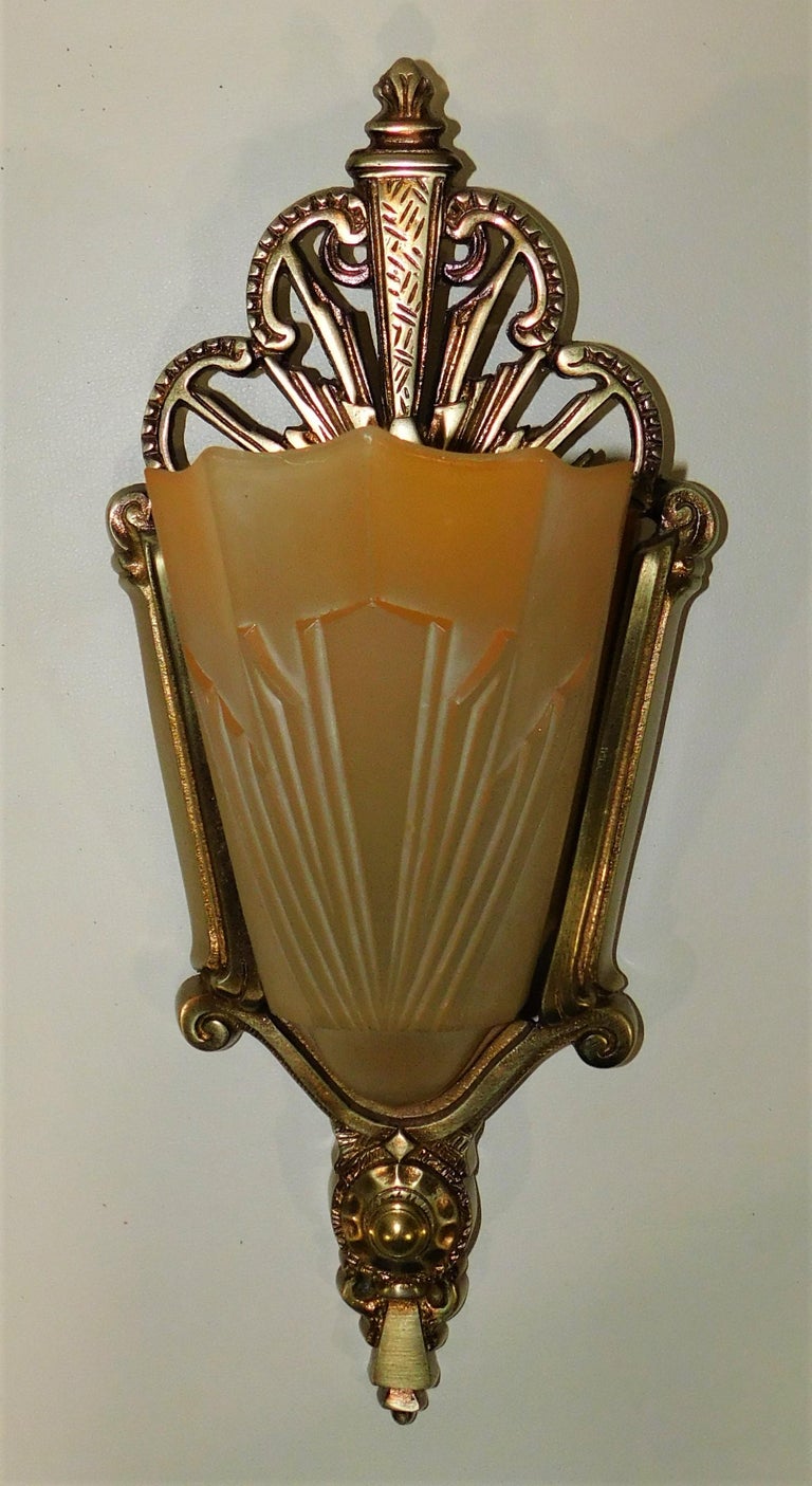 pair of art deco american wall sconces circa 1925 with original slip shades at 1stdibs