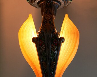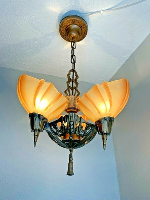 art deco slip shade chandelier old lamps & things, llc