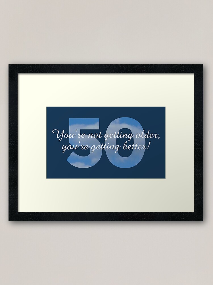 50th birthday sayings design" framed art print by theshirtshops redbubble